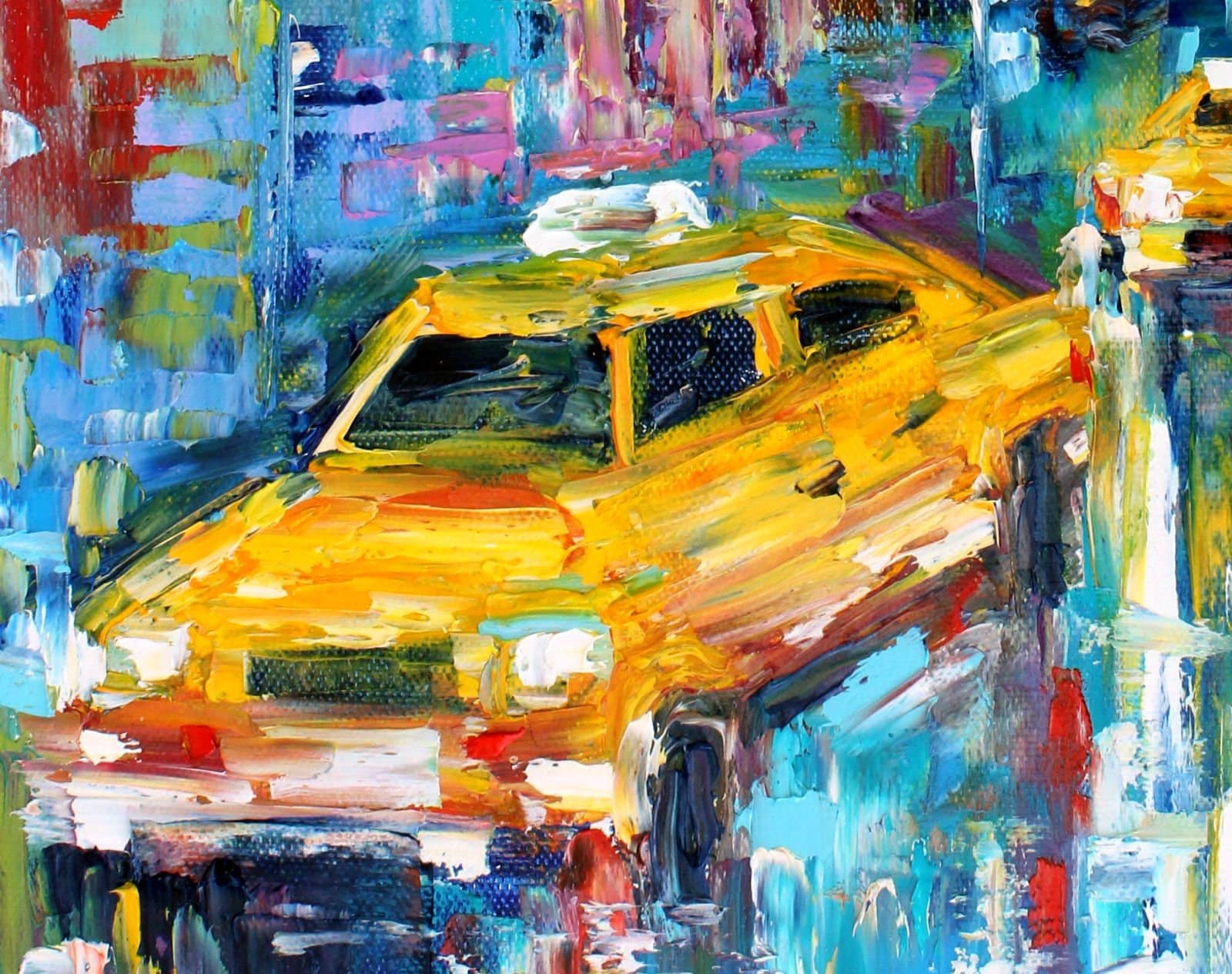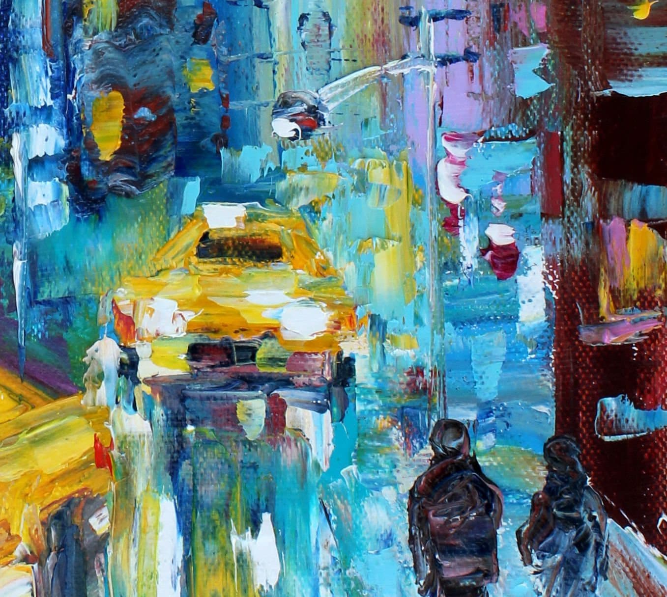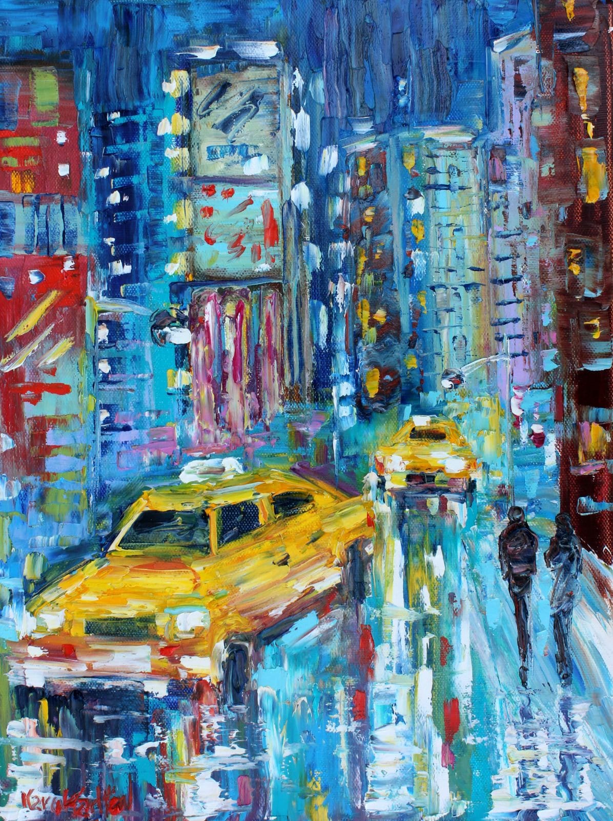 New York city abstract original oil, on canvas palette knife, impressionism fine art by Karen Tarlton