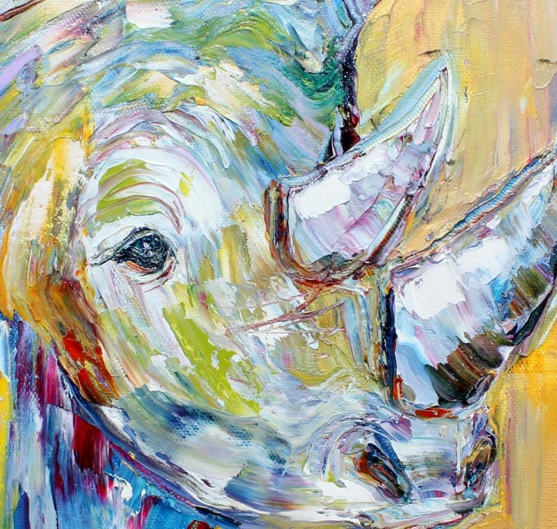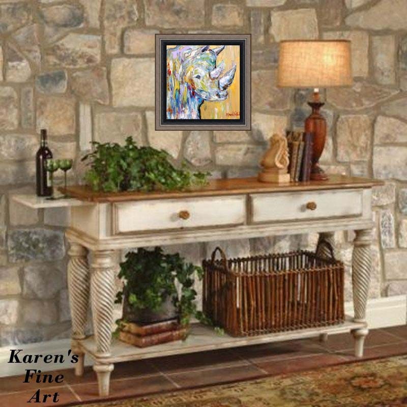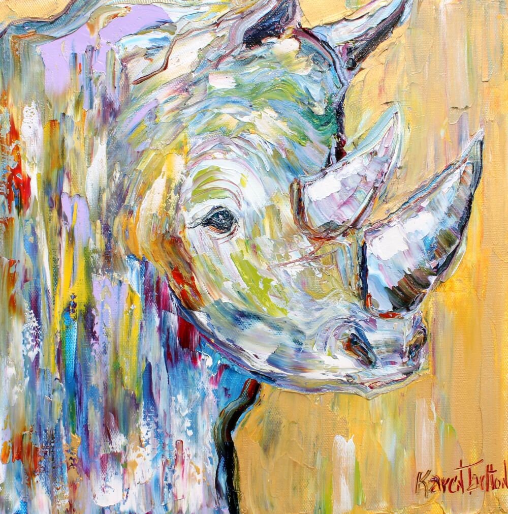 Beautiful Rhino. I had previously purchased a painting of a Lion and an Elephant, and the Rhino is my latest addition to this collection. Karen's art is colorful, expressive, and meaningful. I can't wait to order additional pieces. Thank you Karen.