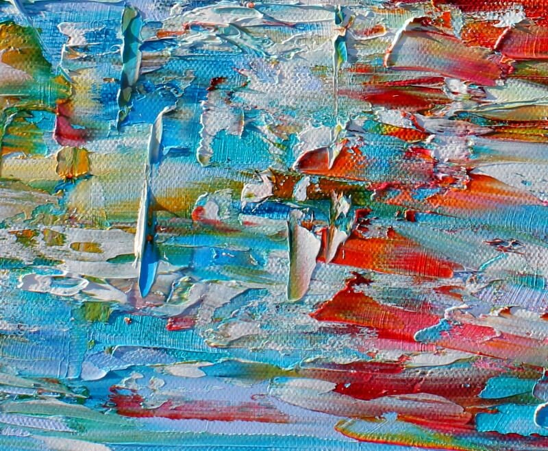 Harbor Boats painting original oil wall art ocean abstract palette knife impressionism on canvas fine art by Karen Tarlton