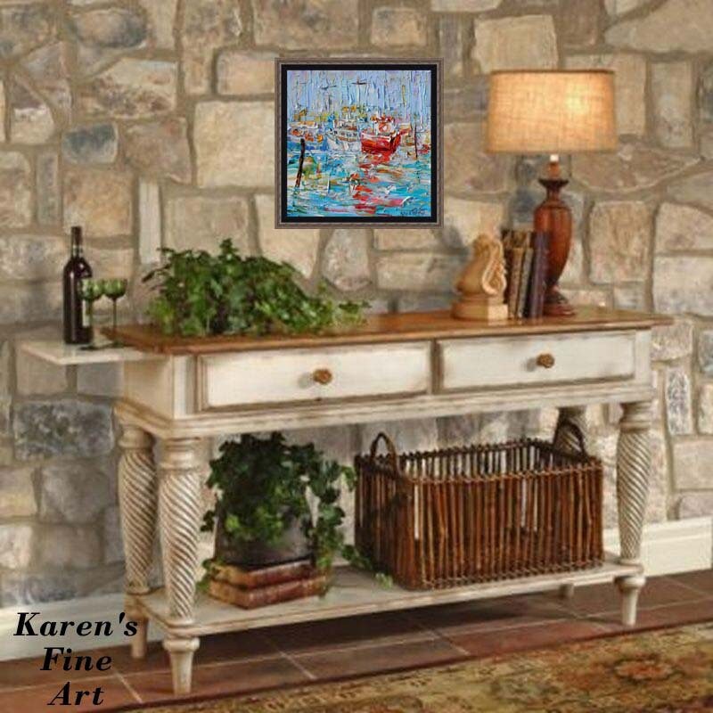 Harbor Boats painting original oil by Karen’s Fine Art – Gallery Represented Modern Impressionism in oils impasto canvas painting on gallery wrapped canvas