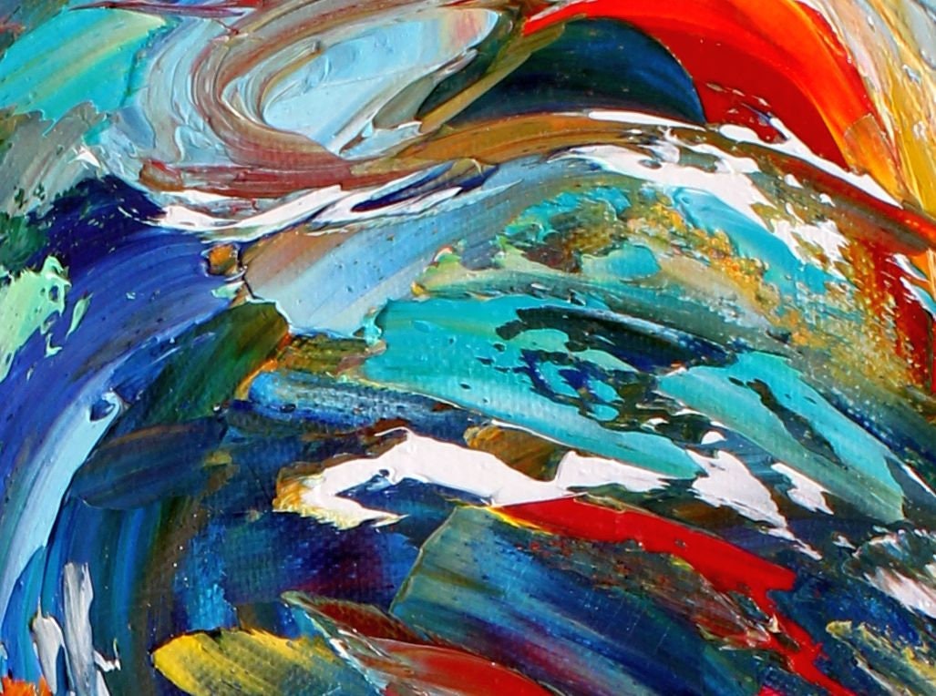 This unique original oil is painted in oil impasto style on canvas with palette knife.