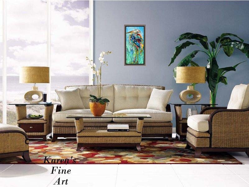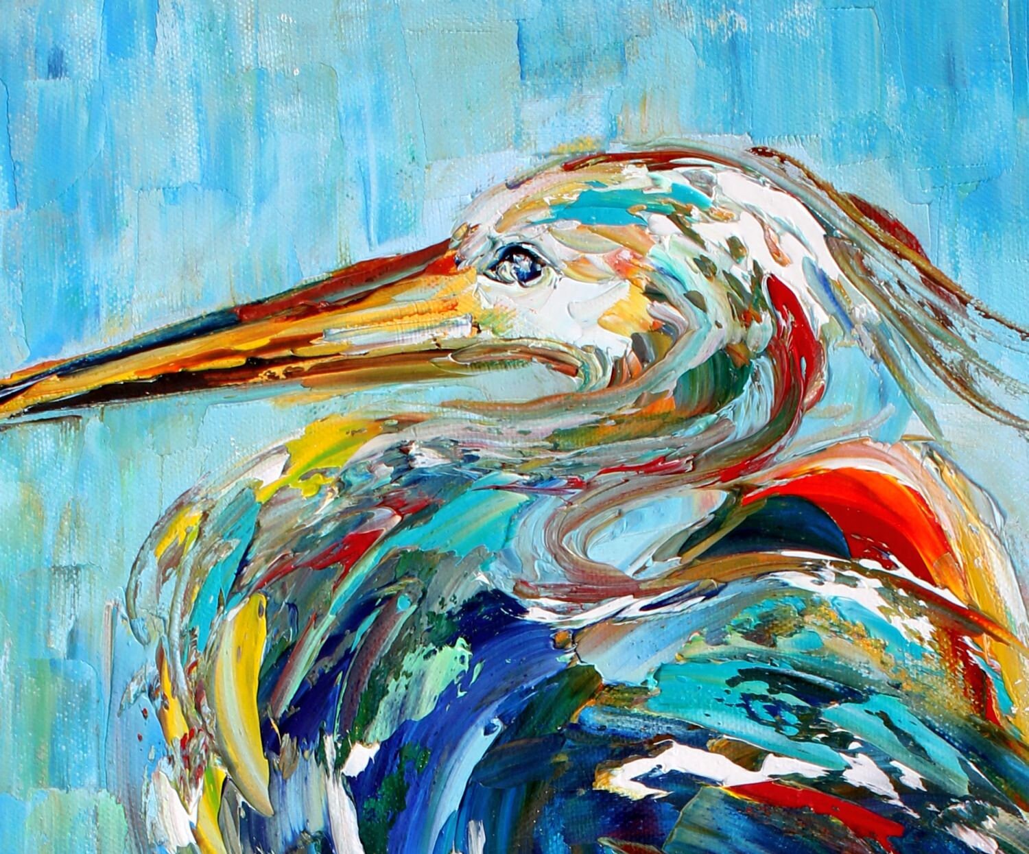Heron painting original palette knife oil paint impressionism on canvas art by Karen Tarlton