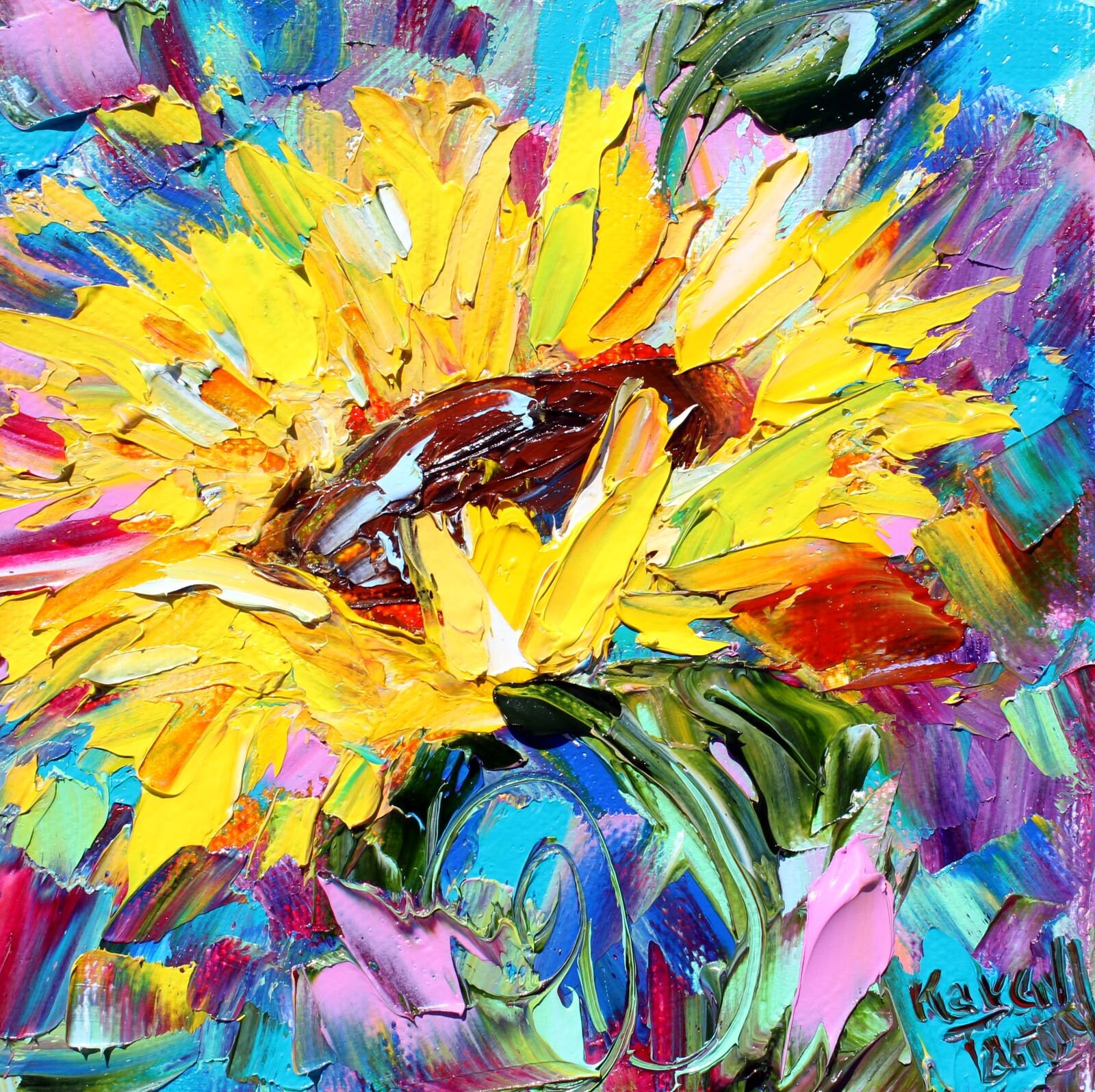 Sunflower in oil by Karen’s Fine Art – Gallery Represented Modern Impressionism in oils impasto canvas painting on gallery wrapped canvas.