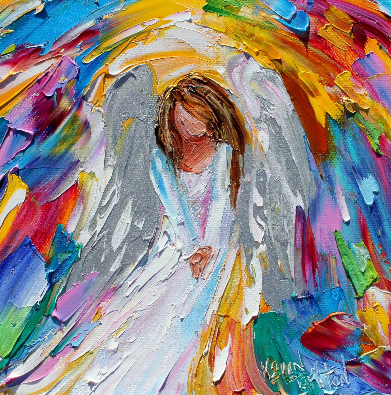 Angel of Hope painting, angels art, canvas painting original oil abstract impressionism fine art impasto by Karen Tarlton
