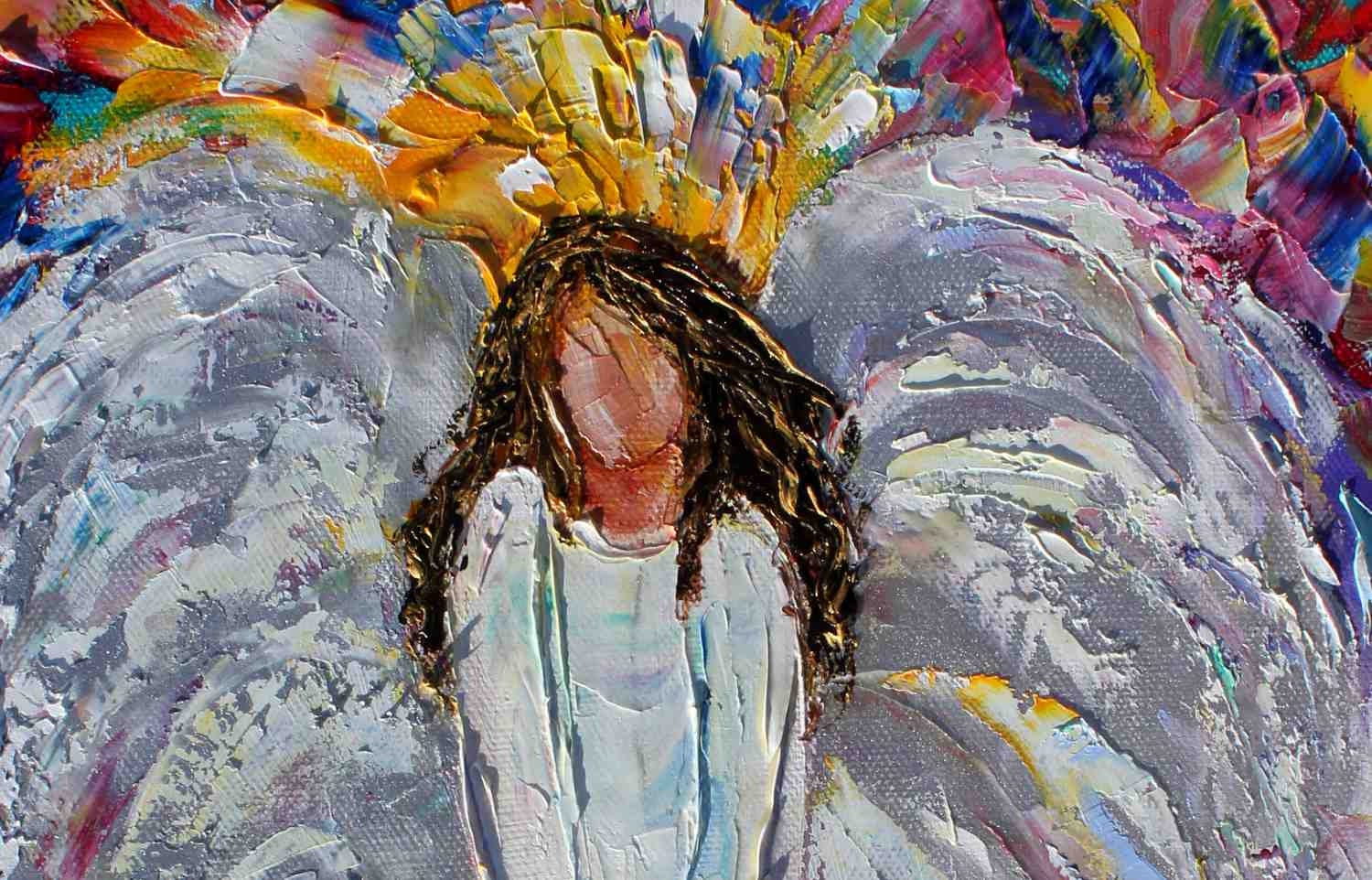 The Guardian Angel painting is stunning. The colors and texture are beautiful.