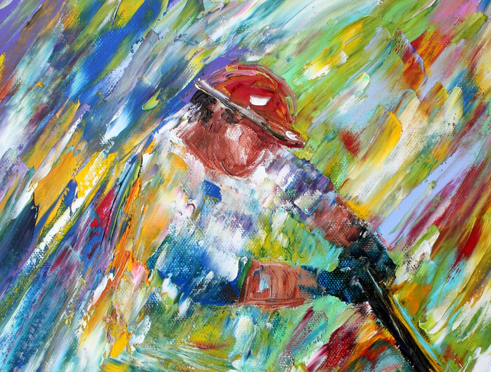 Baseball player painting original oil abstract impressionism fine art on canvas by Karen Tarlton