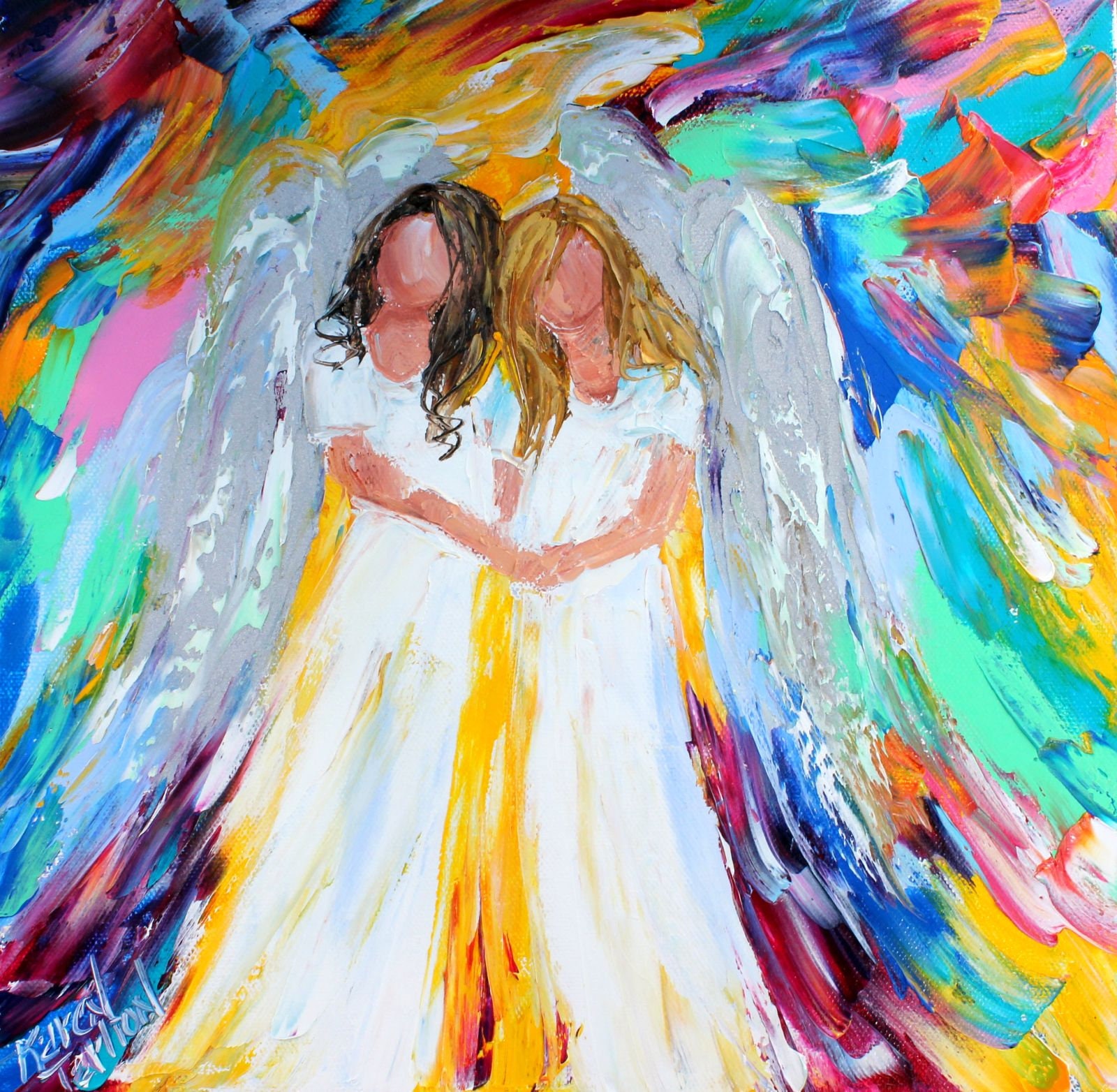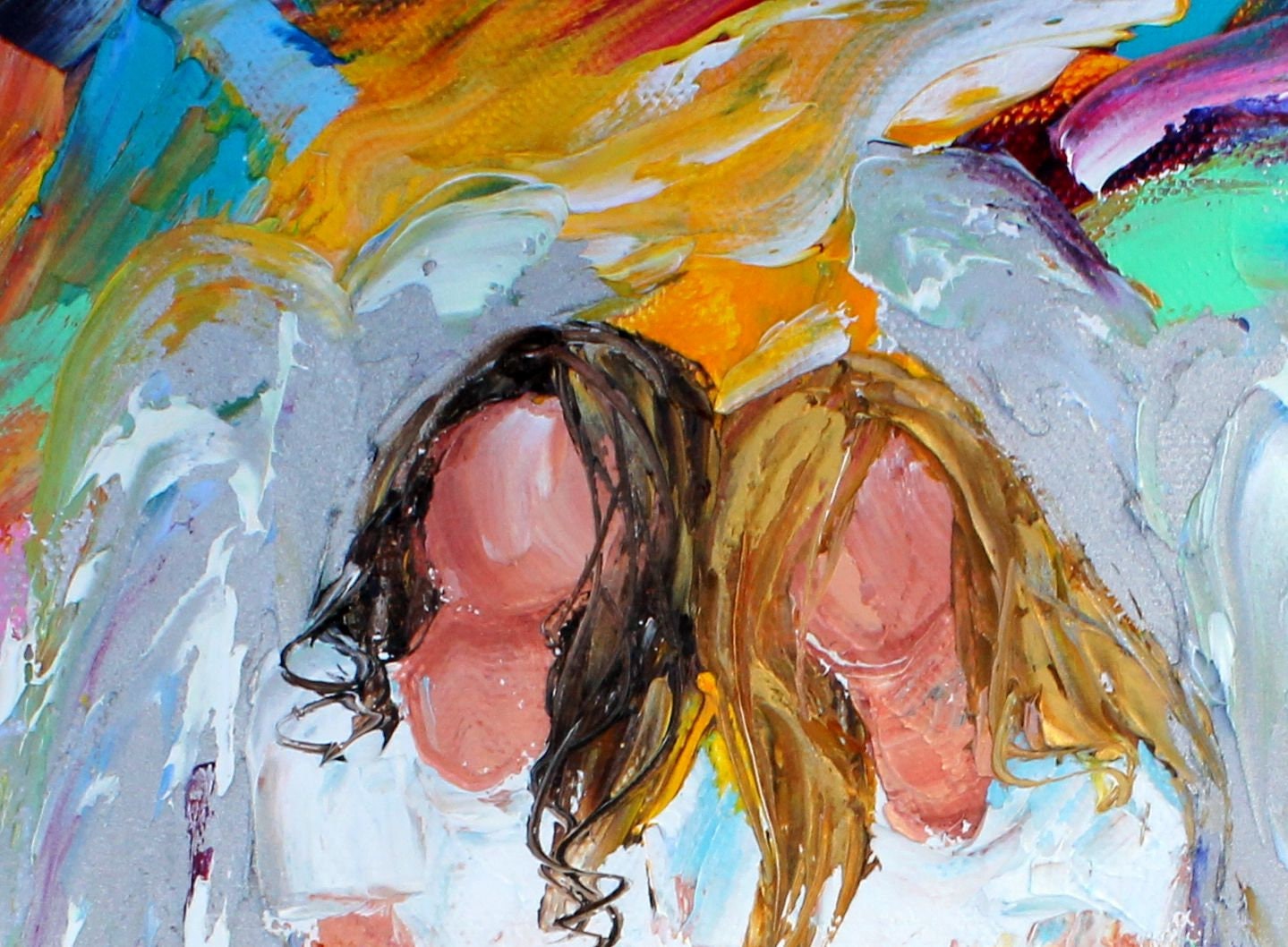 Angel friends painting, angels art, original oil, palette knife impressionism on canvas fine art by Karen Tarlton