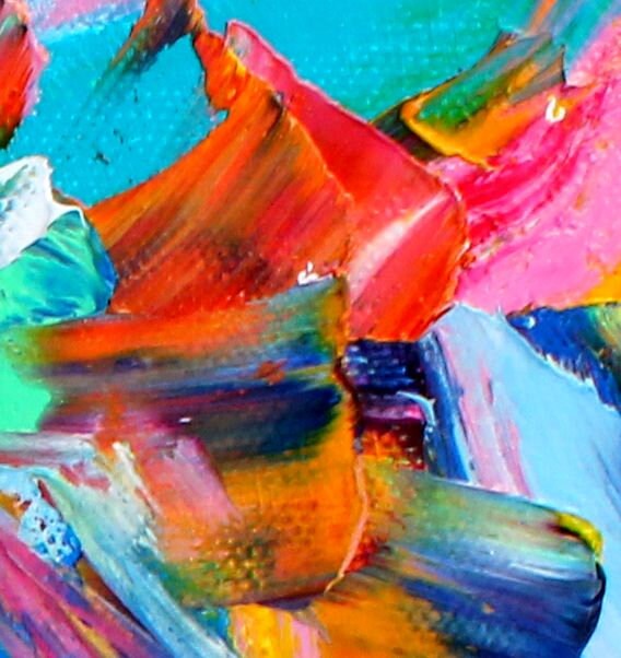 This original oil is painted in oil impasto style. A dramatic presence in any space, this contemporary original will be a great addition to any fine art collection and hangs beautifully with or without a frame on a nail.