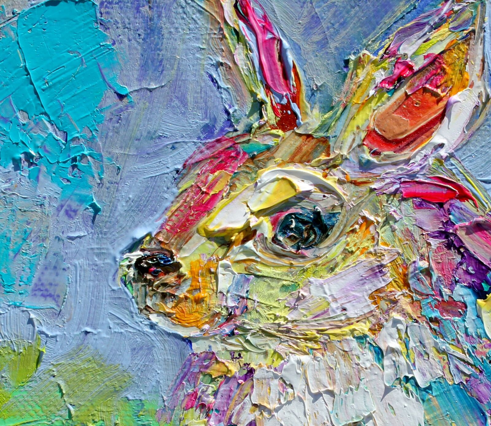 Rabbit painting in oil by Karen’s Fine Art – Gallery Represented Modern Impressionism in oils impasto canvas painting on gallery wrapped canvas.