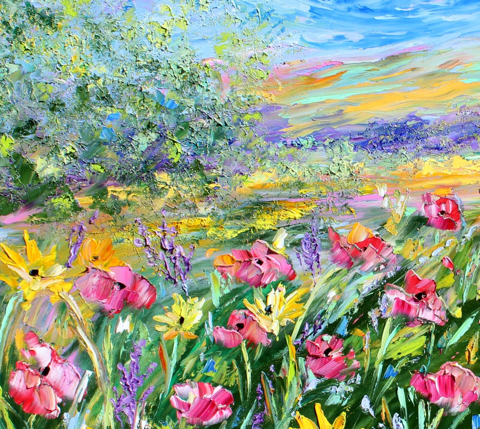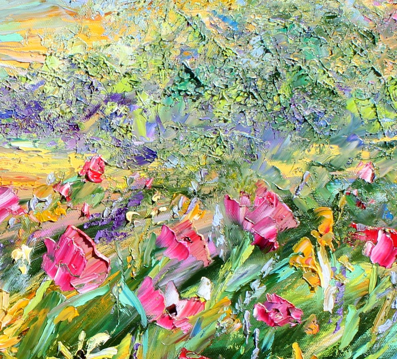 Wildflower field painting by Karen’s Fine Art – Gallery Represented Modern Impressionism in oils impasto canvas painting on gallery wrapped canvas